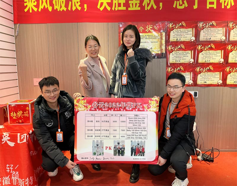 会議で,安徽feistelアウトドア製品共同のゼネラルマネージャー. , ltd .は年次パフォーマンスベッティングに関する活動を開始しました.友人は彼ら自身の目標に従ってゼネラルマネージャーと賭けをしました,そして彼らはそれぞれ対応する報酬を得ることができました.全員が次々に参加しました.このイベントでは,会議全体でギャンブルを追加した人もいました.全員が次々にアドバイスをしました, 3そして最後に、統計は安徽省の屋外製品co . , ltd .の従業員によって実行されました。