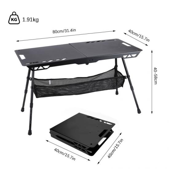製品 : このカスタムアウトドアキャンプテーブルは、軽量のアルミニウムIGTキャンプテーブルで、屋外の冒険、ピクニック、キャンプ場の調理セットアップの耐久性、携帯性、安定性を提供します。