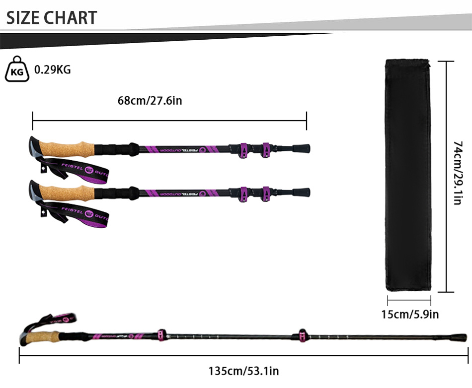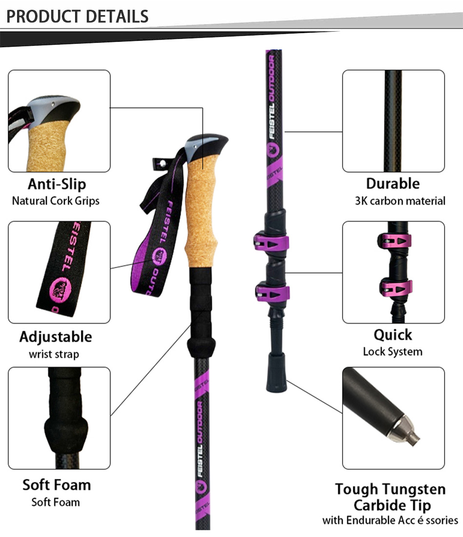 製品 : 工場供給の伸縮式 3 セクション調節可能ウォーキングスティック、航空機用アルミニウム 7075 トラッキング トレッキング ポールは、ハイキング、トレッキング、登山、および日常のアウトドア アドベンチャーに強力で軽量、調節可能なサポートを提供します。