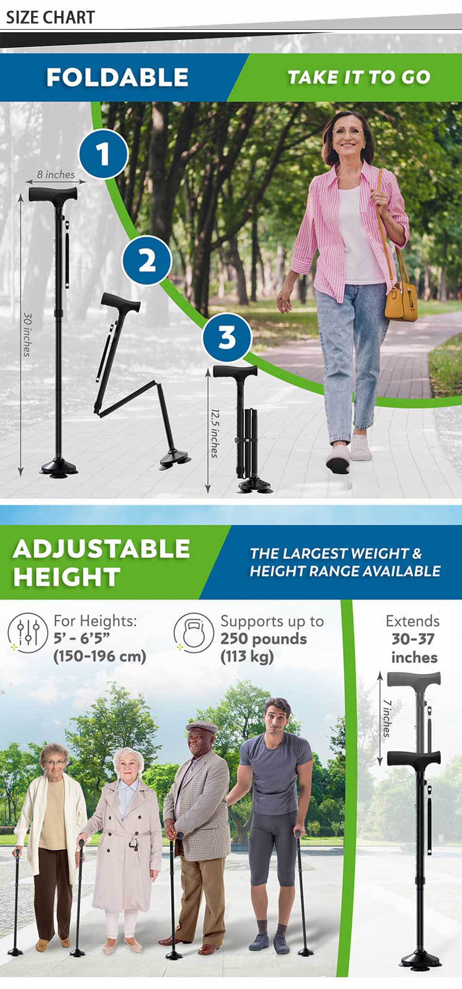 製品 : 新しい老人用歩行杖は、快適なT字型ハンドル、安定した滑り止めベース、耐久性のある構造を備えた折りたたみ式デザインを特徴としており、高齢のユーザーにバランス、安全性、屋外での歩行サポートを強化します。