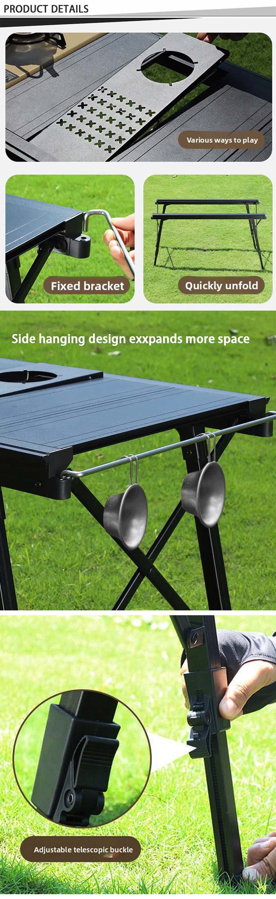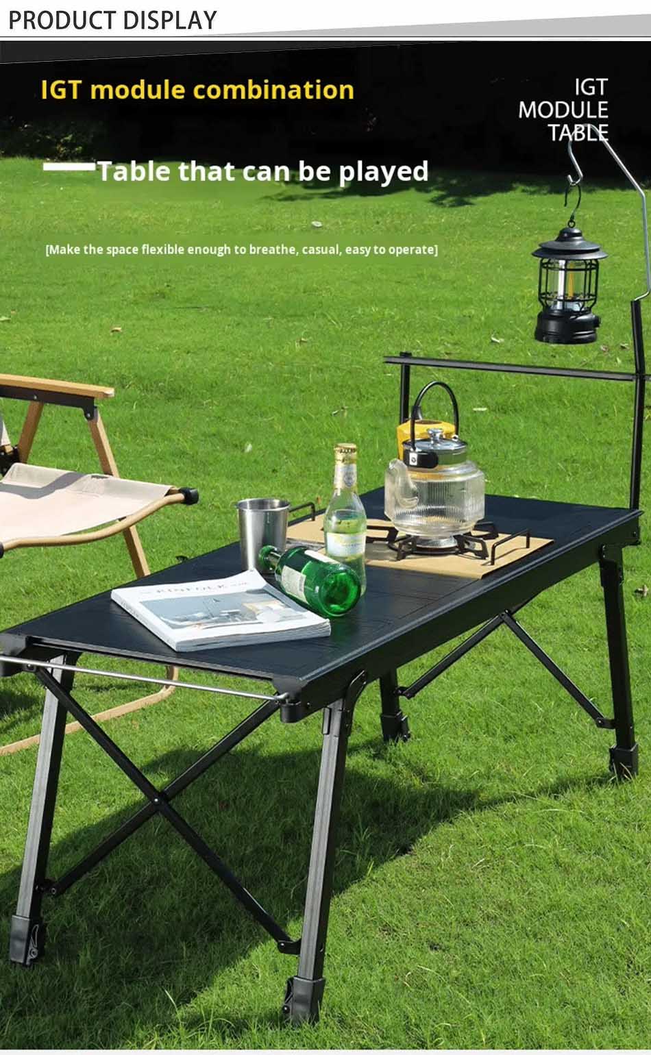 製品 : 屋外用の高さ調節可能な軽量アルミ折りたたみ式 X 字型 IGT キャンプ テーブルは、強力な安定性、素早いセットアップ、コンパクトな収納、調理、食事、屋外キャンプのアクティビティに対する多用途のサポートを提供します。