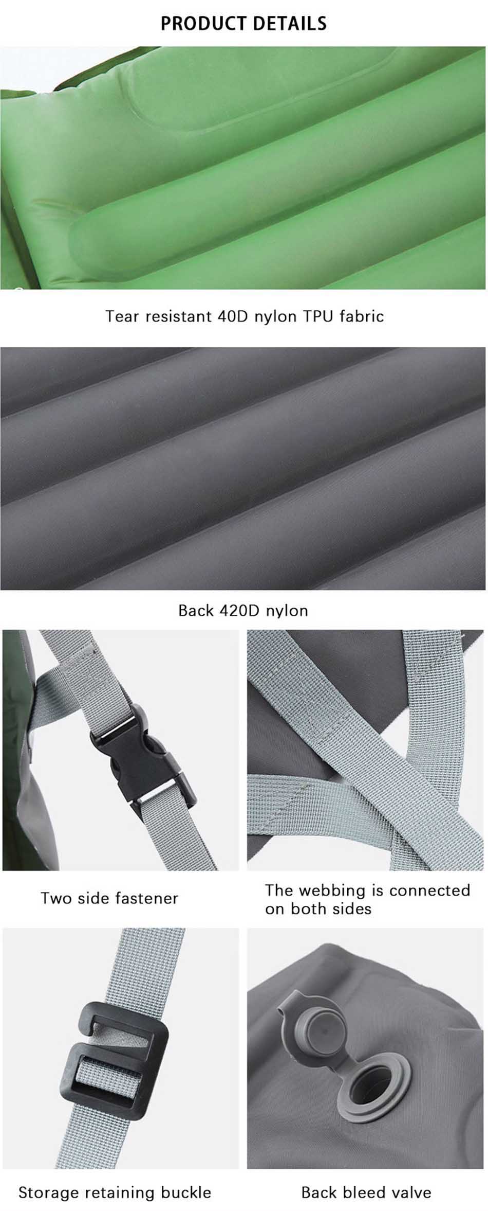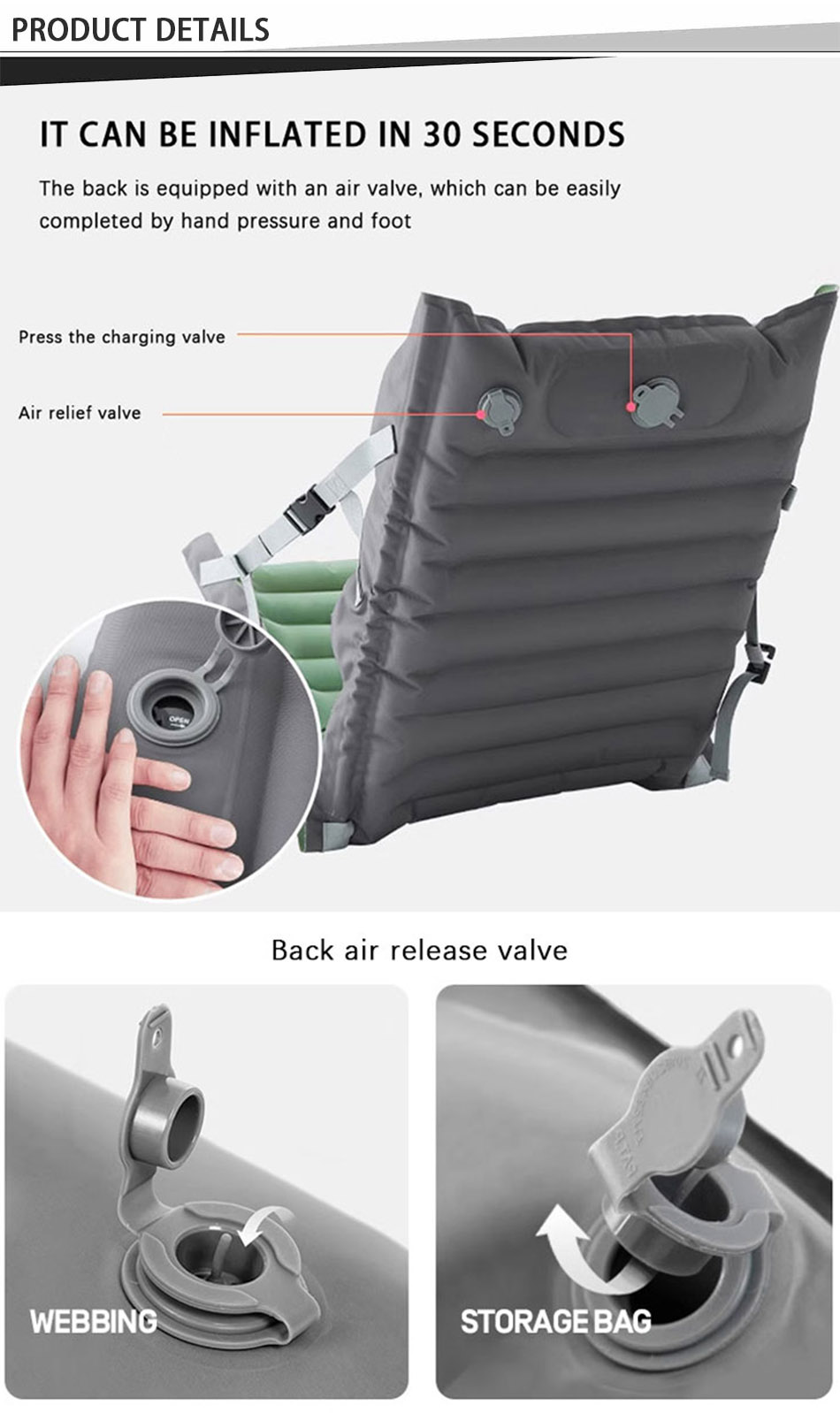 製品 : 屋外キャンプ用、角度調節可能なビーチカジュアルポータブルクッションエアチェアスリーピングパッドは、軽量で快適、多用途のリクライニングサポート、コンパクトな携帯性を備え、屋外のどこでもリラックスできます。