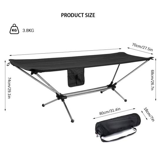 製品 : この屋外折りたたみ式のポータブルアルミニウム合金ラウンジビーチコットは、軽量で耐久性のある折りたたみ可能なデザインを提供し、キャンプ、ビーチ旅行、屋外の冒険に快適なリラクゼーションを提供します。
