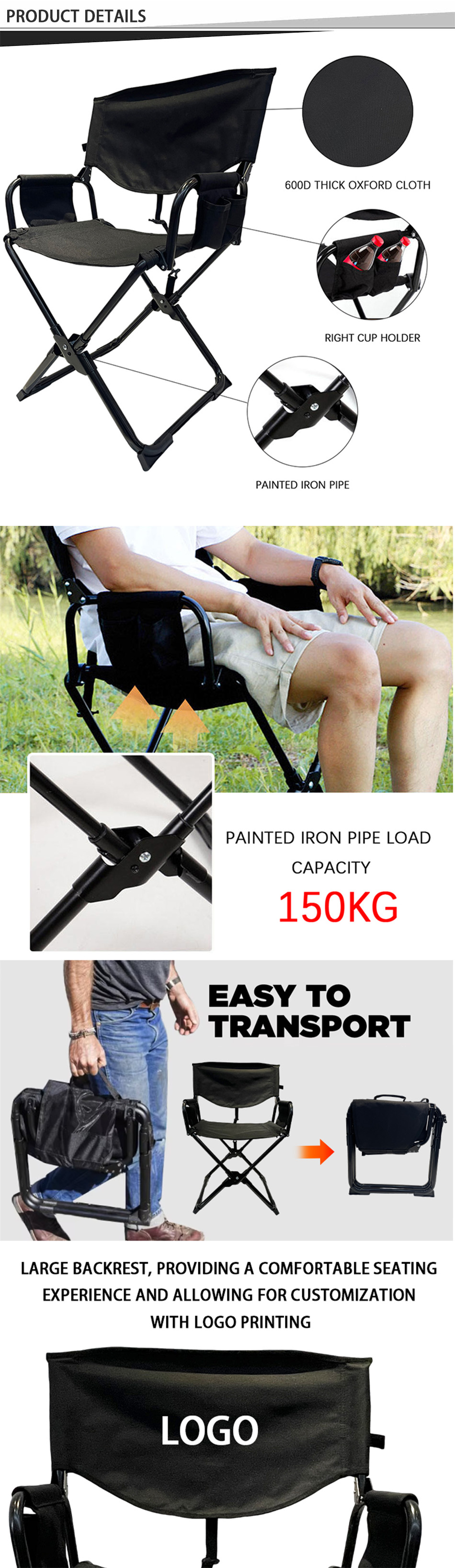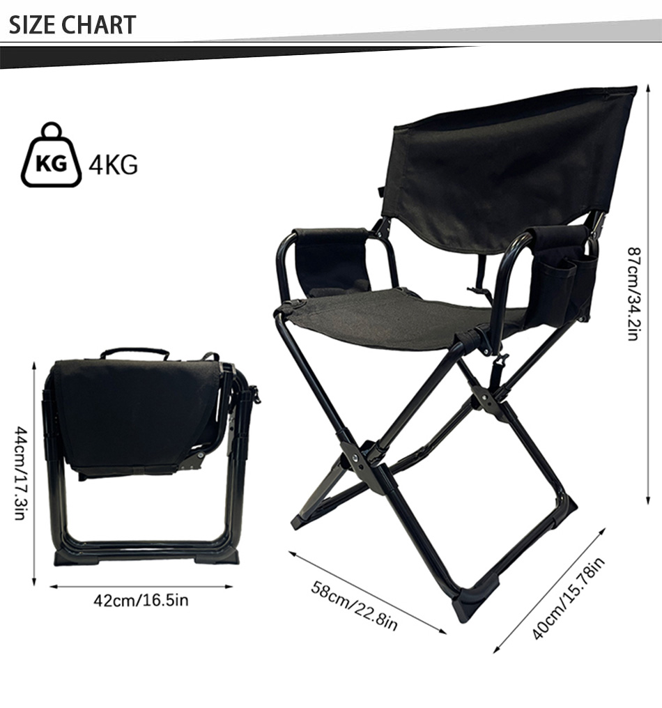 製品 : 屋外用頑丈な金属製ポータブル折りたたみビーチフィッシングディレクターキャンプチェアは、耐久性のある構造、人間工学に基づいた快適さ、硬いアームレストを備えており、多目的なアウトドアアドベンチャーに信頼できるサポートと利便性を提供します