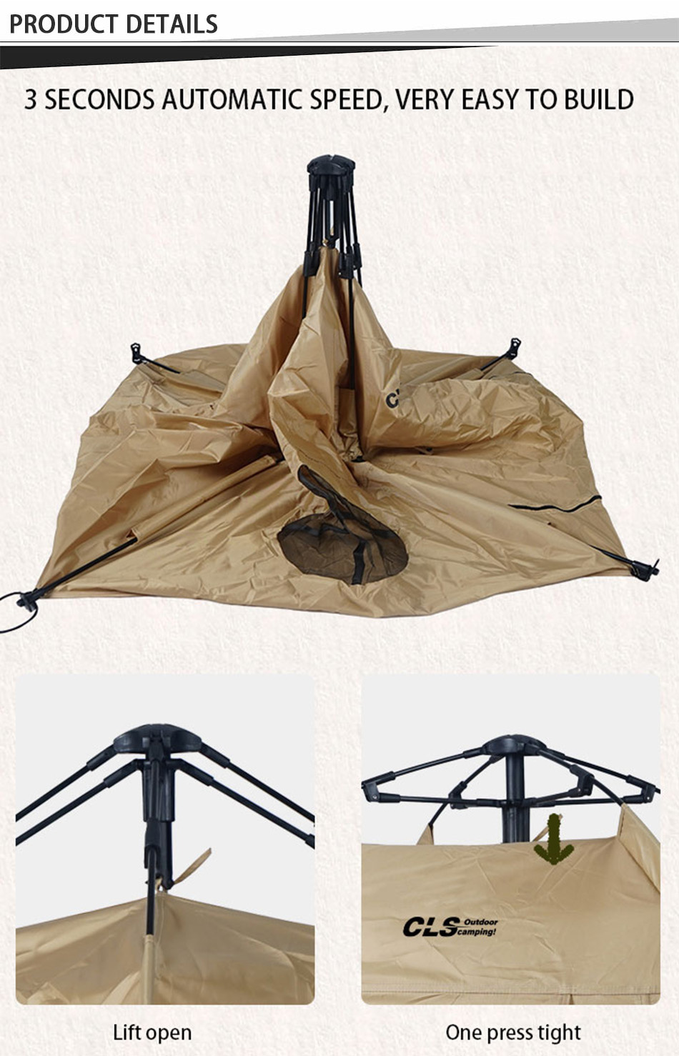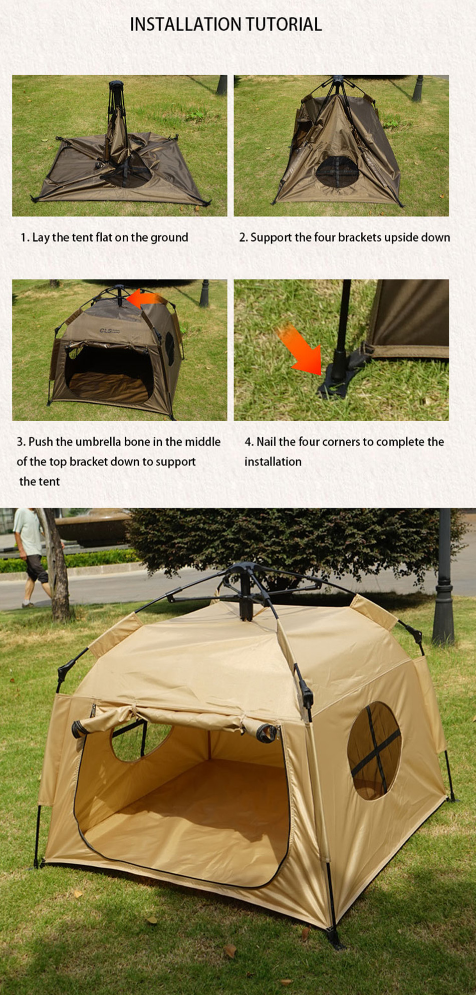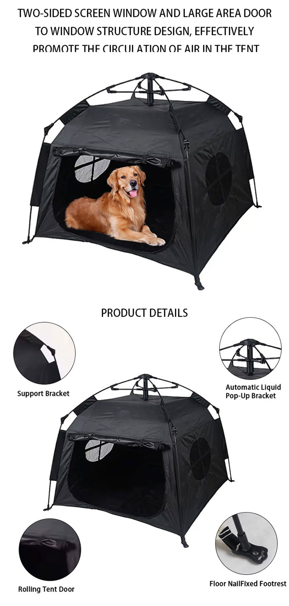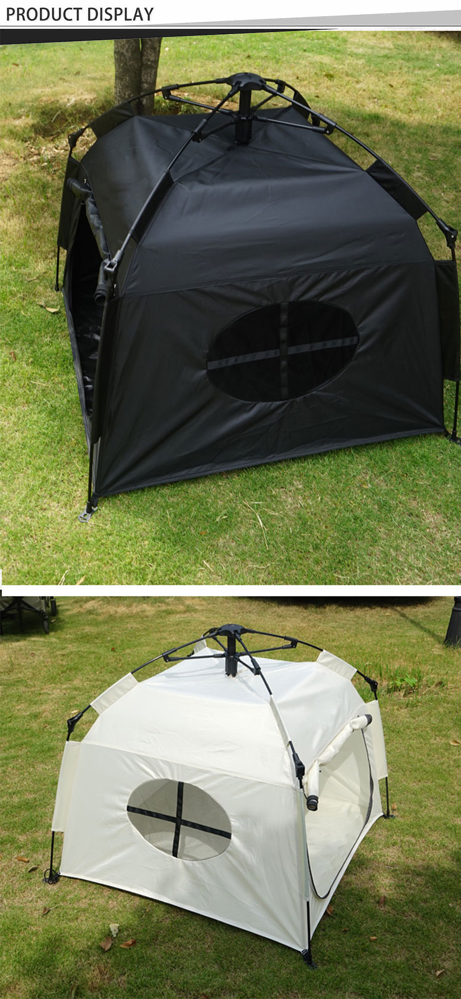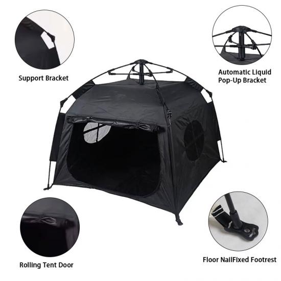 製品 : この屋外用自動折りたたみ式犬小屋は、防水性と日焼け防止性を備え、アウトドアや家庭での使用に適した、持ち運び可能で耐久性があり快適なペット用キャンプ テントです。