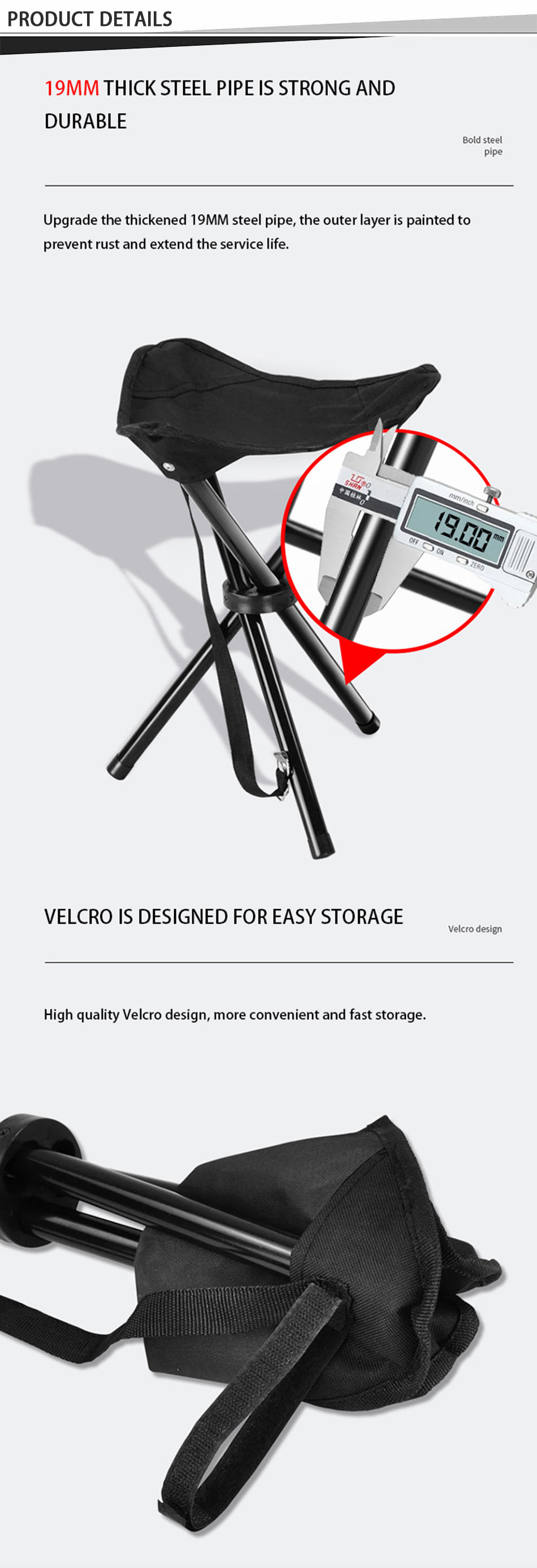 製品 : この屋外の多機能メタルポータブルミニ軽量キャンプスツールは、釣り、ハイキング、さまざまな屋外アクティビティに最適なオックスフォードの生地シートを備えたモダンな三角形のデザインを特徴としています。