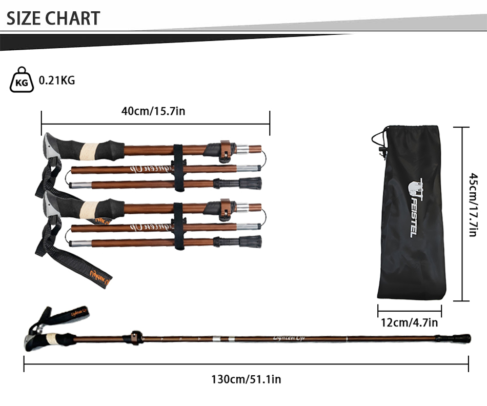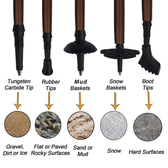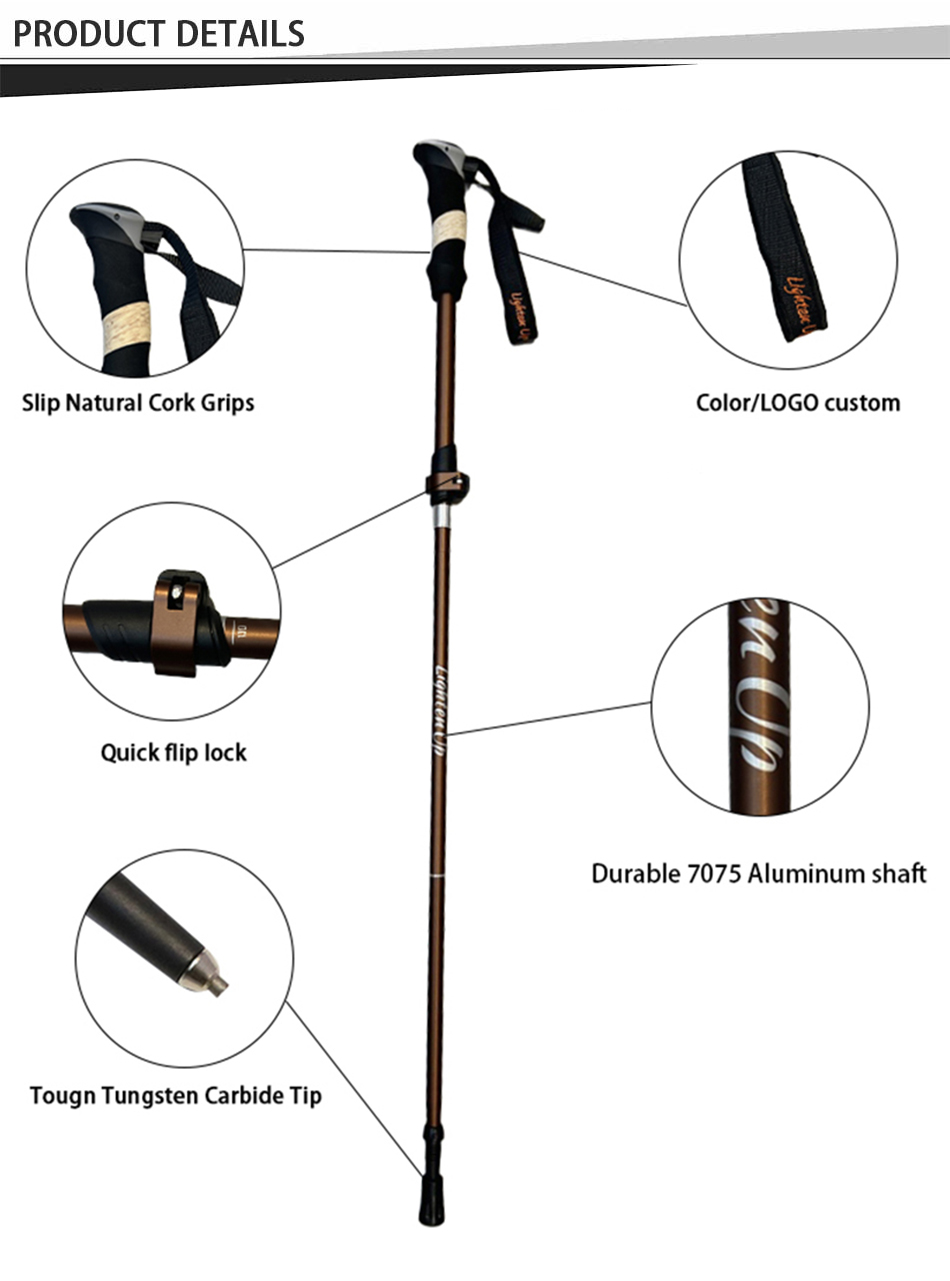 製品 : 超軽量 6061 アルミニウム合金製の 5 セクション折りたたみ式トレッキング ポールは、調整可能な安定性、耐久性に優れたデザイン、快適な EVA ハンドルを備え、屋外でのウォーキングを信頼性高くサポートします。