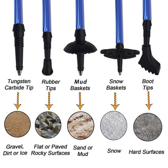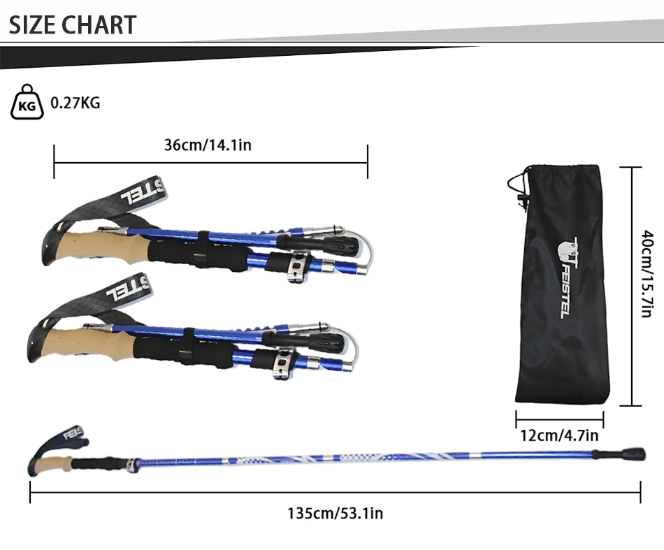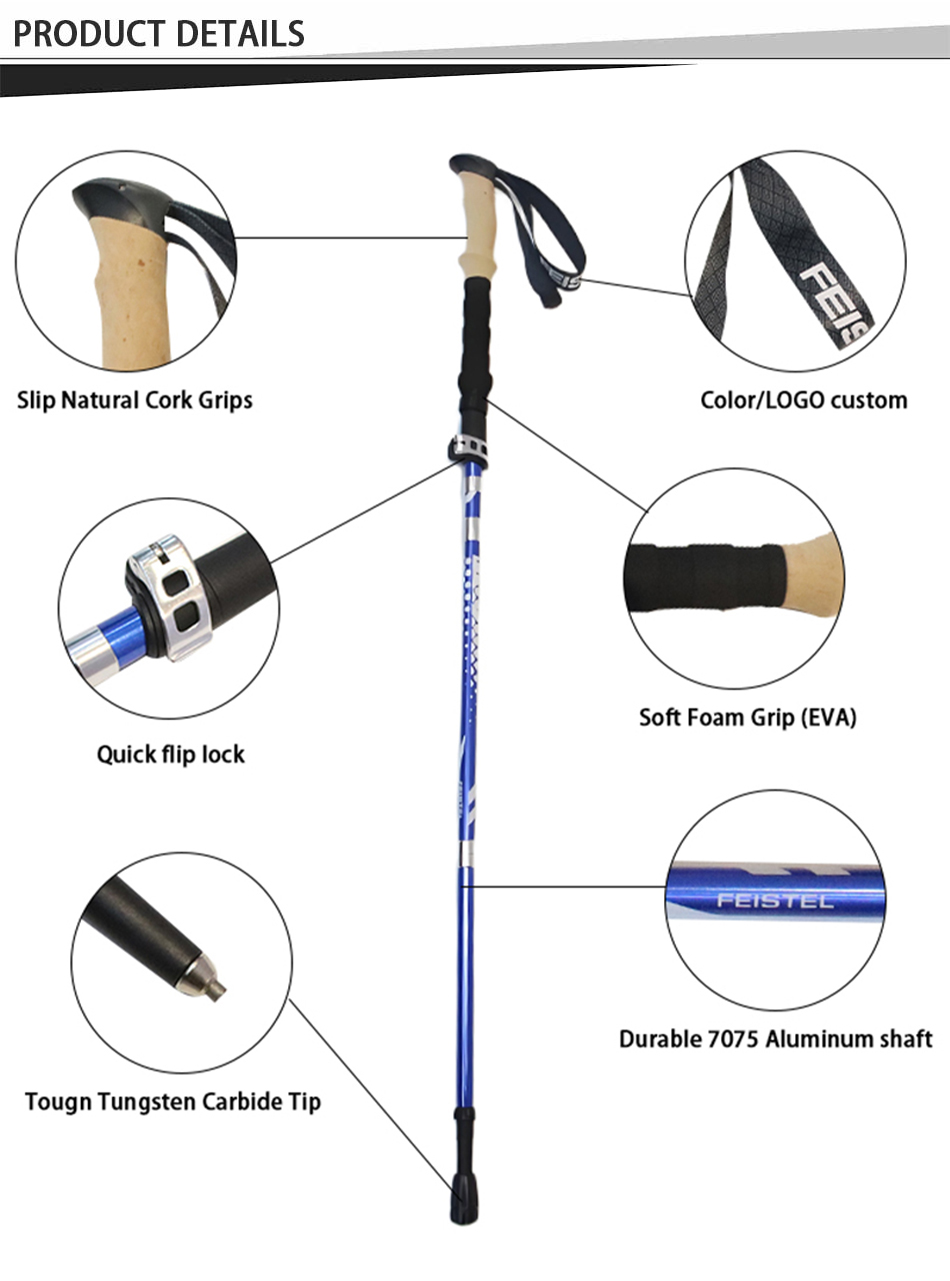 製品 : コルクグリップ付きの超軽量 7075 アルミニウム合金 5 セクション トレッキング ポールは、現代的な調整可能な安定性、折りたたみ可能な携帯性、そして多目的な屋外ハイキング アドベンチャーに信頼できるサポートを提供します。