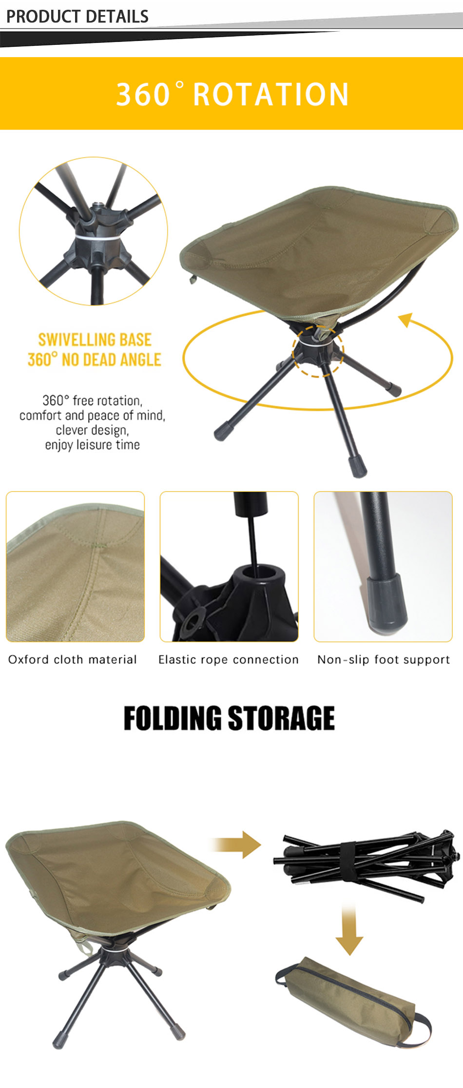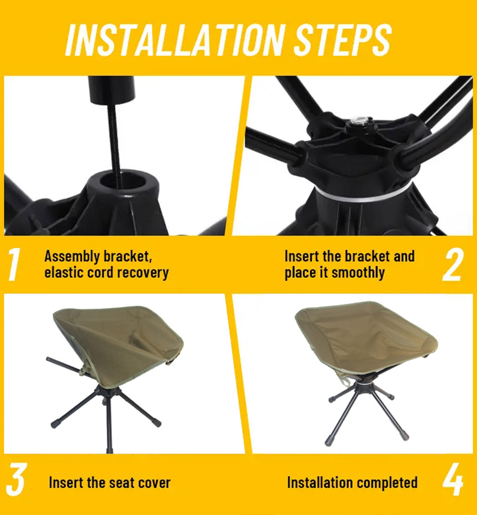 製品 この超軽量でポータブルな屋外用 360° 回転チェアは、ビーチでのキャンプや釣りに最適で、快適性、安定性、簡単な回転を提供し、リラックスした屋外体験を実現します。