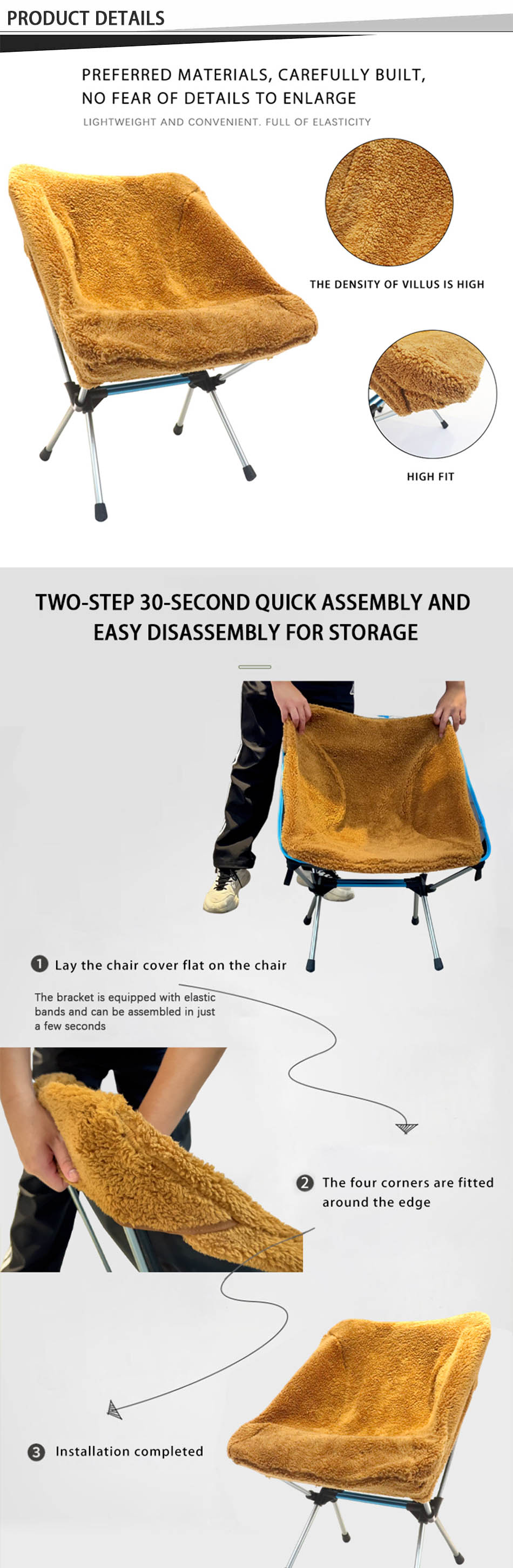 製品 : 冬用の暖かい厚手のウールのチェアカバーは、優れた断熱性と快適さを提供し、ハイキング、ピクニック、ムーンチェア用に設計されており、高品質の屋外キャンプ用折りたたみチェアにぴったりです。